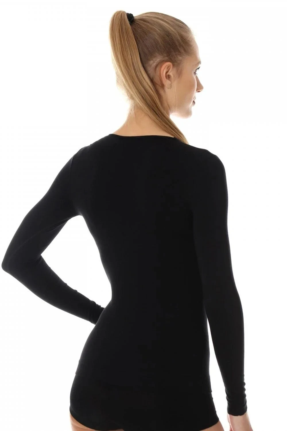 Fitness tričko 00900A BRUBECK - černá barva - vyrobené bezešvou technologií - dlouhé rukávy - ideálně přiléhá k tělu a zároveň chrání kůži před otěrem - rychlé odvedení potu ven, udržuje kůži suchou, je protialergická, rychle schne a nemusí se žehlit - bezešvé prádlo určené především na sportovní aktivity - firma Brubeck BodyGuard se zabývá výrobou oblečení pro extrémní sporty a využívá nejnovější technologieMateriálové složení: 55% bavlna + 45% polyamid