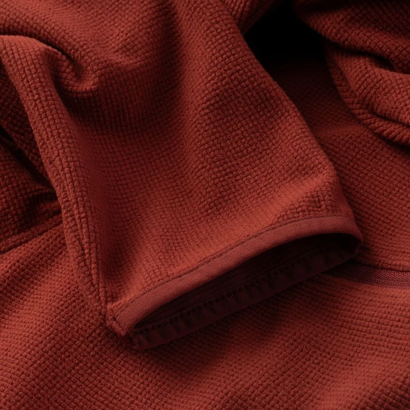 - Struktura fleecu v podobě kanálků napomáhá transportu vlhkosti ven.