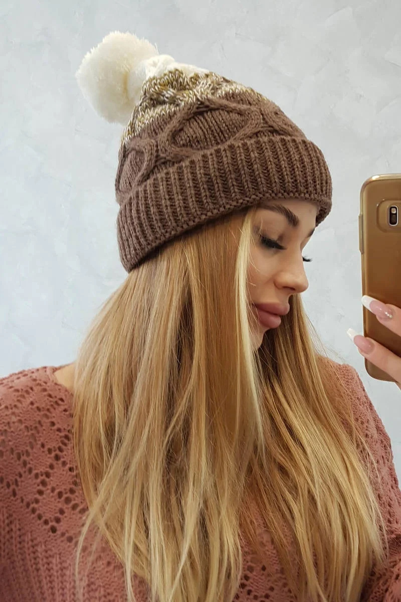 Fleecová čepice Alice K248 cappuccino+ecru