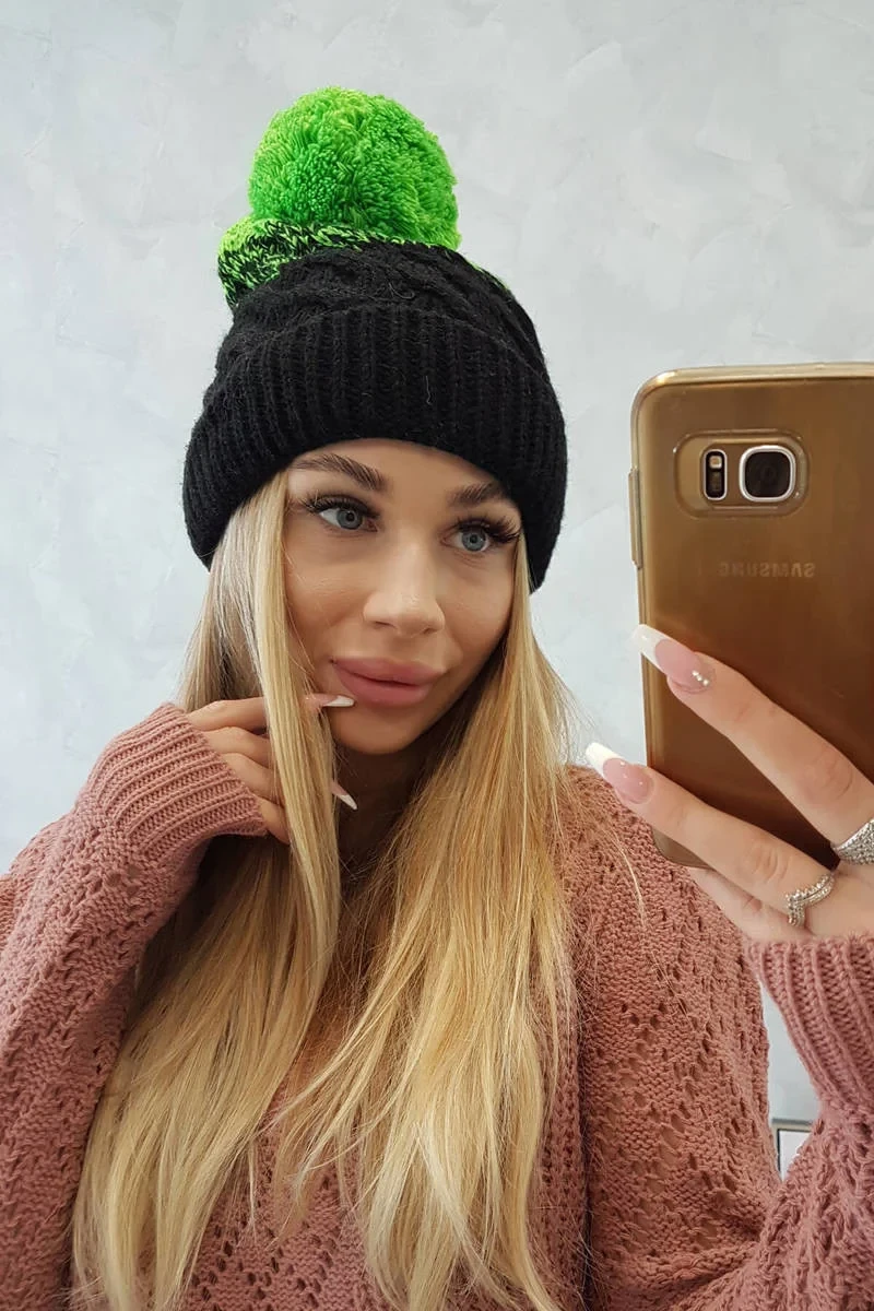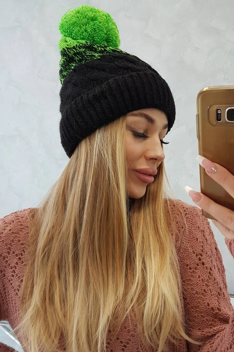 Fleecová čepice Ilona K218 černá+zelená
