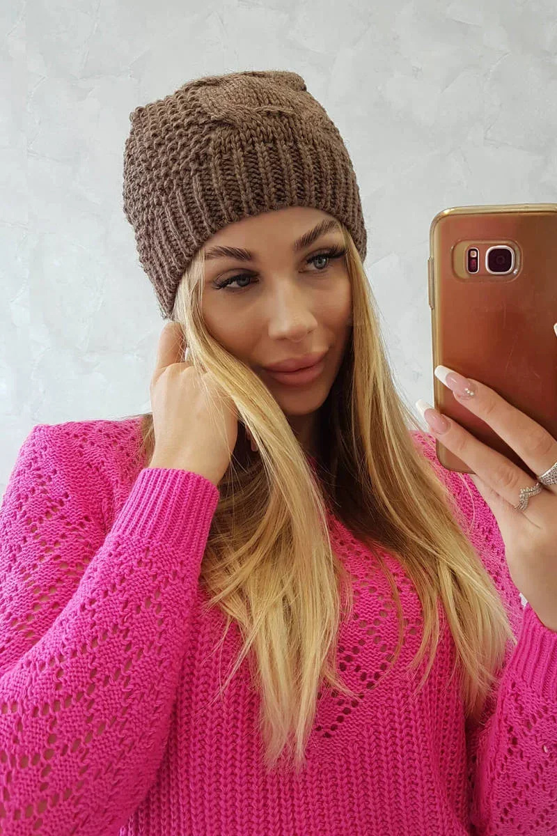 Fleecová čepice Sandra model 18750733 cappuccino - K-Fashion
