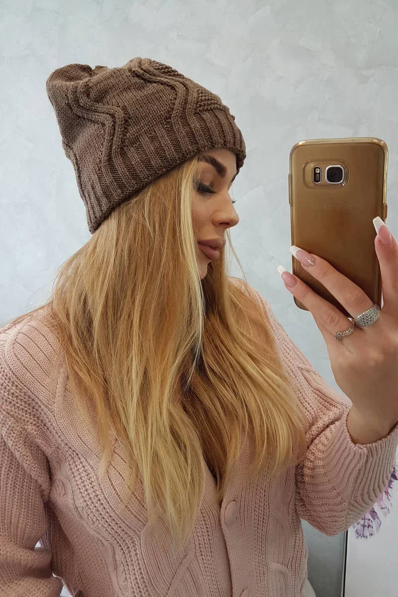 Fleecová čepice Sylwia K244 mocca
