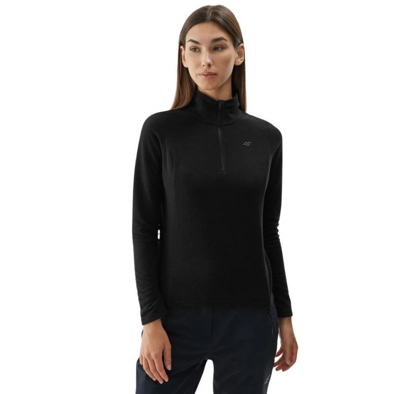 Dámská fleecová mikina 4F F031 deep black 4FAW23UFLEF031 20S Dámská fleecová mikina 4F je hřejivá vrstva (druhá vrstva), kterou lze nosit pod bundou nebo lyžařskou kombinézou. Hodí se například při lyžování, snowboarding, trekking, běh nebo každodenní použití. Vystavený výstřih s vysokým límcem. Krátký zip u krku zakončený nášivkou chránící bradu. Je vyrobena z měkkého a lehkého mikrofleecu. Technologie 4FWarm podporuje udržování stálé tělesné teploty.Materiál: 100% polyesterEAN čárové kódy zboží jsou: