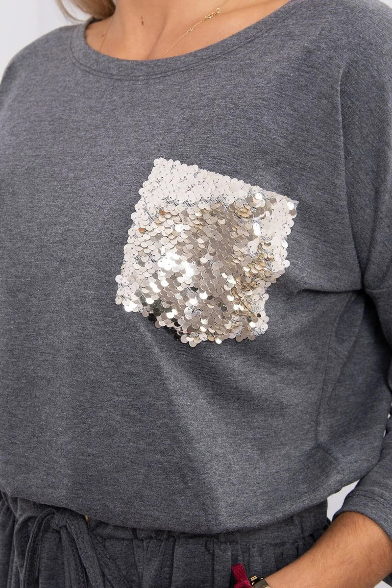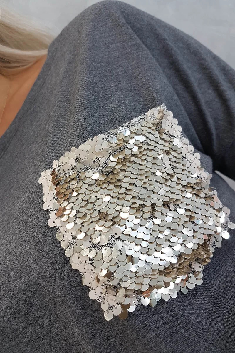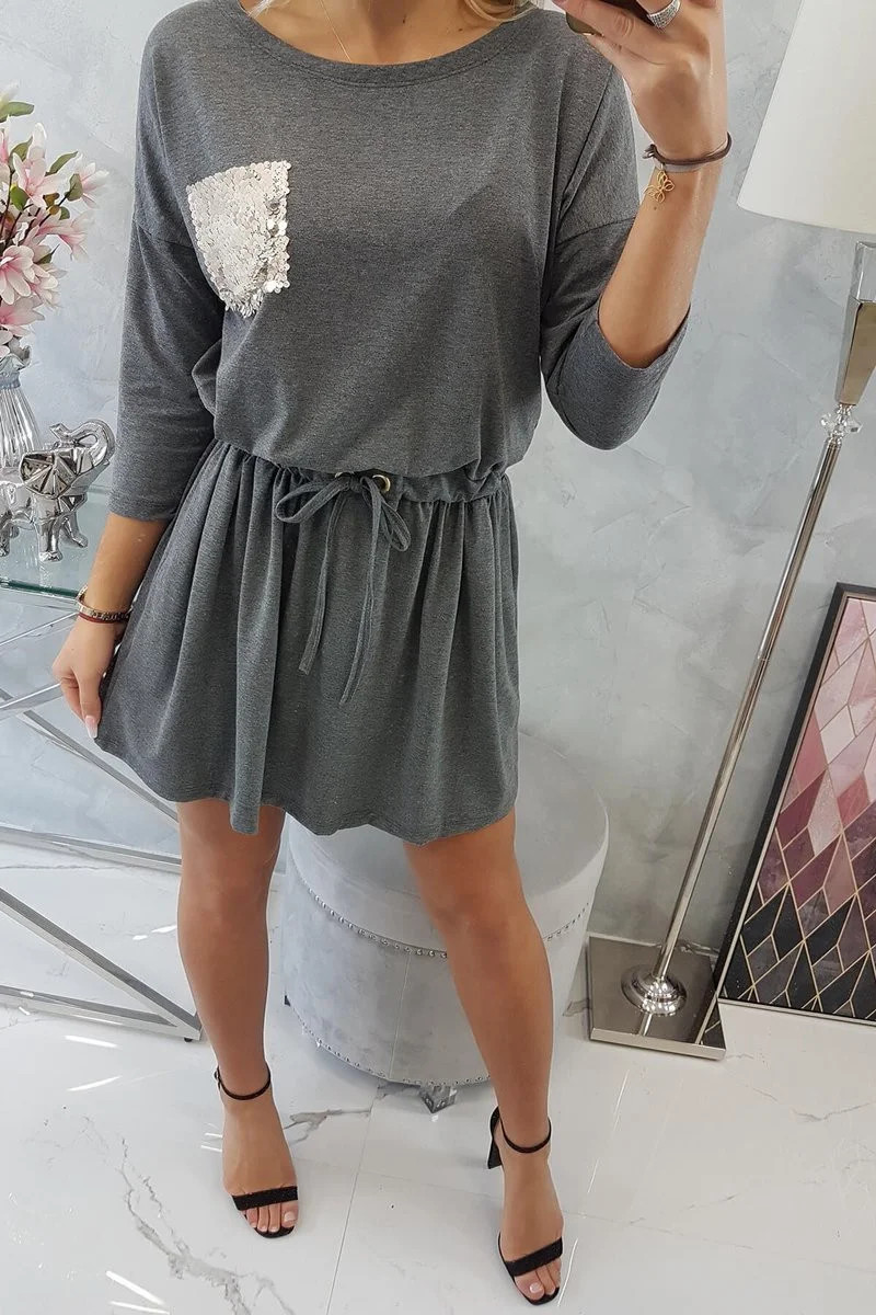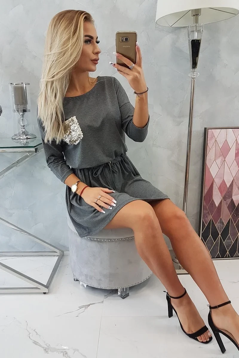 Flitrové šaty s kapsami v grafitové barvě