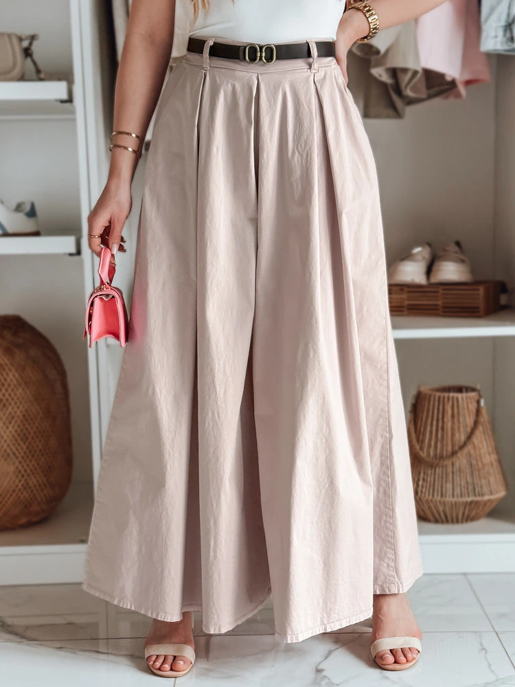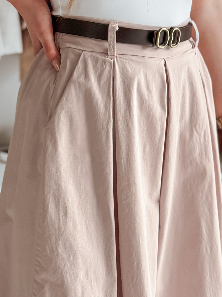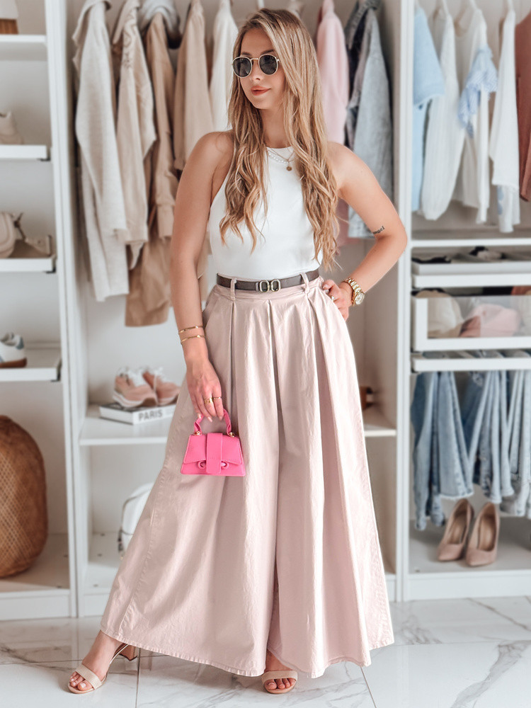 Sukně-kalhoty výjimečně ležérního střihu, která dokonale kombinuje pohodlí a styl. Vysoký pas krásně zvýrazňuje pas a elastický pásek na zadní straně zajišťuje pohodlné nošení. Univerzální velikost je vhodná od XS do L. Součástí je pásek, který doplňuje styling. Model je vybaven dvěma ozdobnými kapsami na přední straně. Ideální na každodenní vycházky a setkání s přáteli.