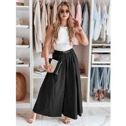 Sukně-kalhoty výjimečně ležérního střihu, která dokonale kombinuje pohodlí a styl. Vysoký pas krásně zvýrazňuje pas a elastický pásek na zadní straně zajišťuje pohodlné nošení. Univerzální velikost je vhodná od XS do L. Součástí je pásek, který doplňuje styling. Model je vybaven dvěma ozdobnými kapsami na přední straně. Ideální na každodenní vycházky a setkání s přáteli.