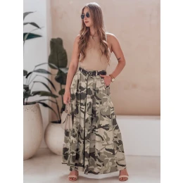 Sukně-kalhoty výjimečně ležérního střihu, která dokonale kombinuje pohodlí a styl. Vysoký pas krásně zvýrazňuje pas a elastický pásek na zadní straně zajišťuje pohodlné nošení. Univerzální velikost je vhodná od XS do L. Součástí je pásek, který doplňuje styling. Model je vybaven dvěma ozdobnými kapsami na přední straně. Ideální na každodenní vycházky a setkání s přáteli.