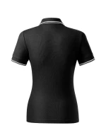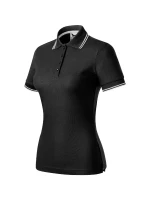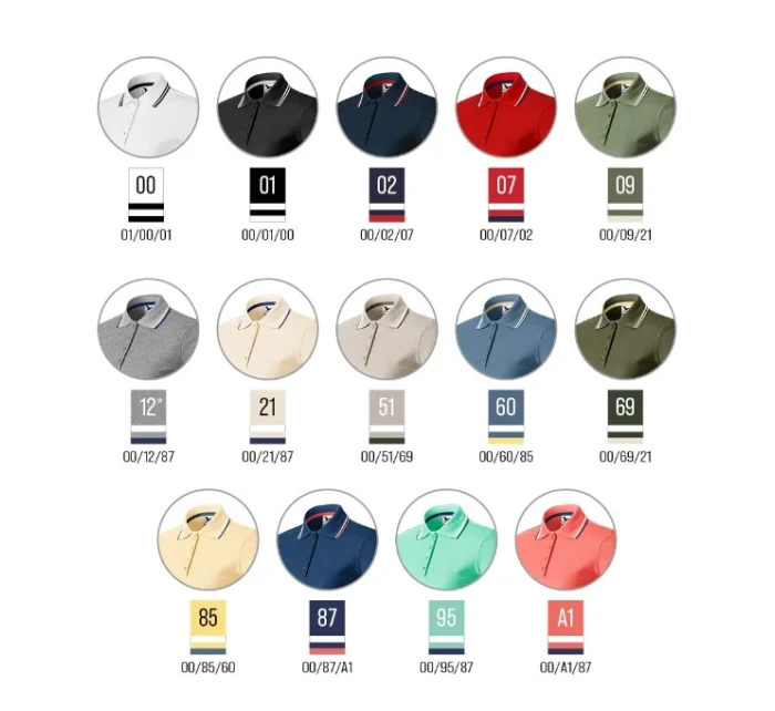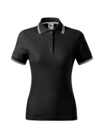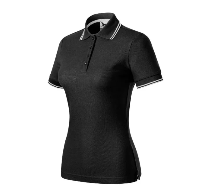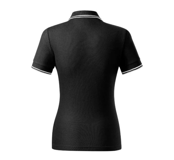lehce vypasovaný střih s bočními švy límeček z žebrového úpletu 1:1 2 kontrastní proužky na rukávu a límečku úzká léga s 4 knoflíčky v barvě materiálu spodní knoflíček přišitý kontrastní nití vnitřní průkrčník začištěn kontrastní páskou zpevnění ramenních švů páskou rozparky v bočních švech s kontrastní páskou