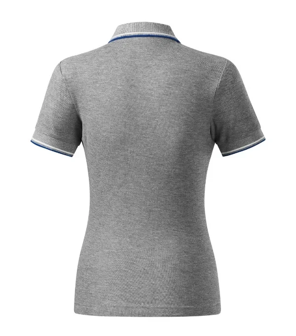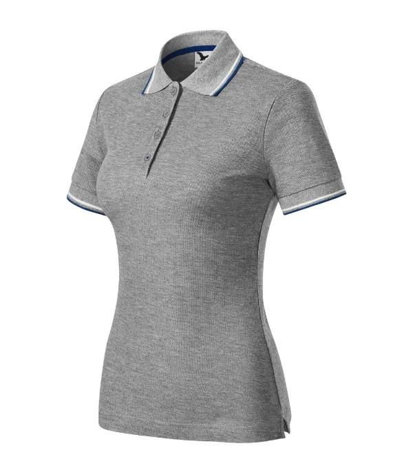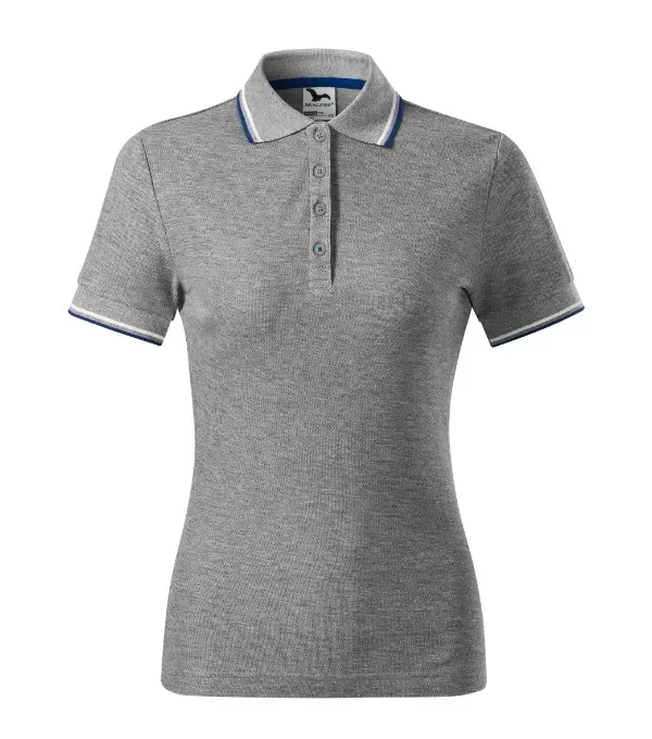 lehce vypasovaný střih s bočními švy límeček z žebrového úpletu 1:1 2 kontrastní proužky na rukávu a límečku úzká léga s 4 knoflíčky v barvě materiálu spodní knoflíček přišitý kontrastní nití vnitřní průkrčník začištěn kontrastní páskou zpevnění ramenních švů páskou rozparky v bočních švech s kontrastní páskou zboží II. jakosti, na zboží II. jakosti se nevztahuje reklamace