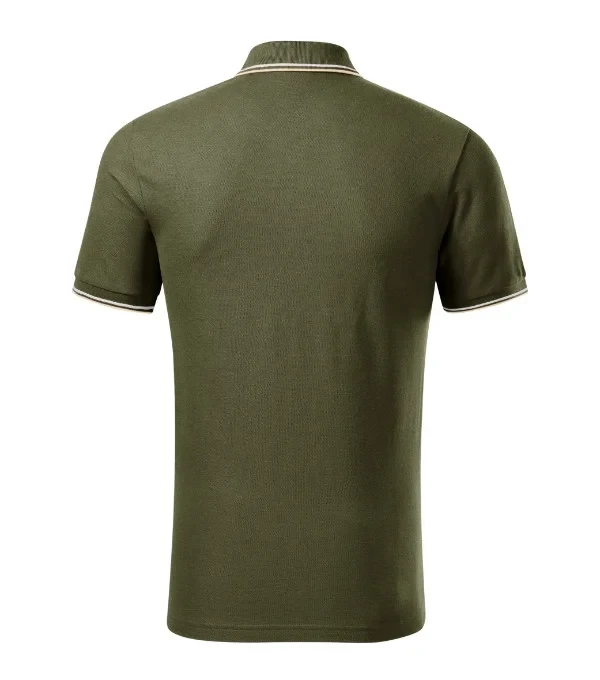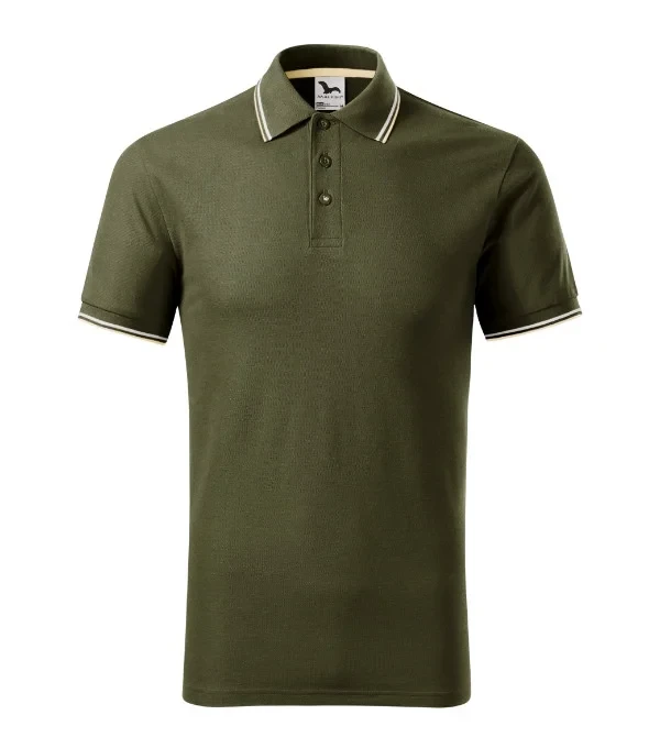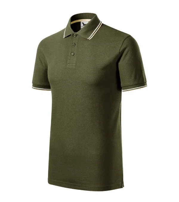 střih s bočními švy límeček z žebrového úpletu 1:1 2 kontrastní proužky na rukávu a límečku léga s 3 knoflíčky v barvě materiálu spodní knoflíček přišitý kontrastní nití vnitřní průkrčník začištěn kontrastní páskou zpevnění ramenních švů páskou rozparky v bočních švech s kontrastní páskou zboží II. jakosti, na zboží II. jakosti se nevztahuje reklamace