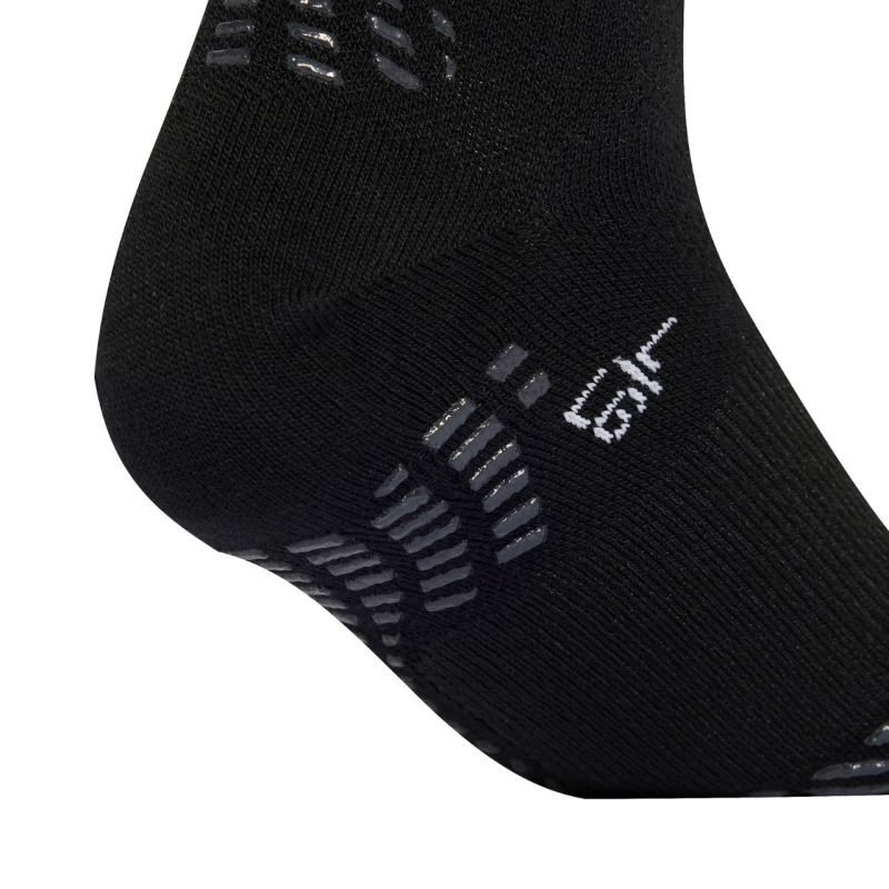 Skarpety adidas Football Grip Printed Crew Performance Light czarne KQ9507 Skarpety piłkarskie adidas zaprojektowane z myślą o treningach i meczach. Technologią Climacool gwarantuje skuteczne odprowadzanie potu. Wysoka elastyczność materiału daje doskonałe dopasowanie bez ucisku. Elastyczne strefy wykorzystujące kanaliki ze zmniejszoną ilością materiału zmniejszają obciążenie w ruchu. Drukowany antypoślizgowy wzór Traxion inspirowany korkami. Dane techniczne:· Materiał: 63% poliester z recyklingu, 24% PA6 z recyklingu, 9% bawełna, 4% elastan· 1 para skarpet