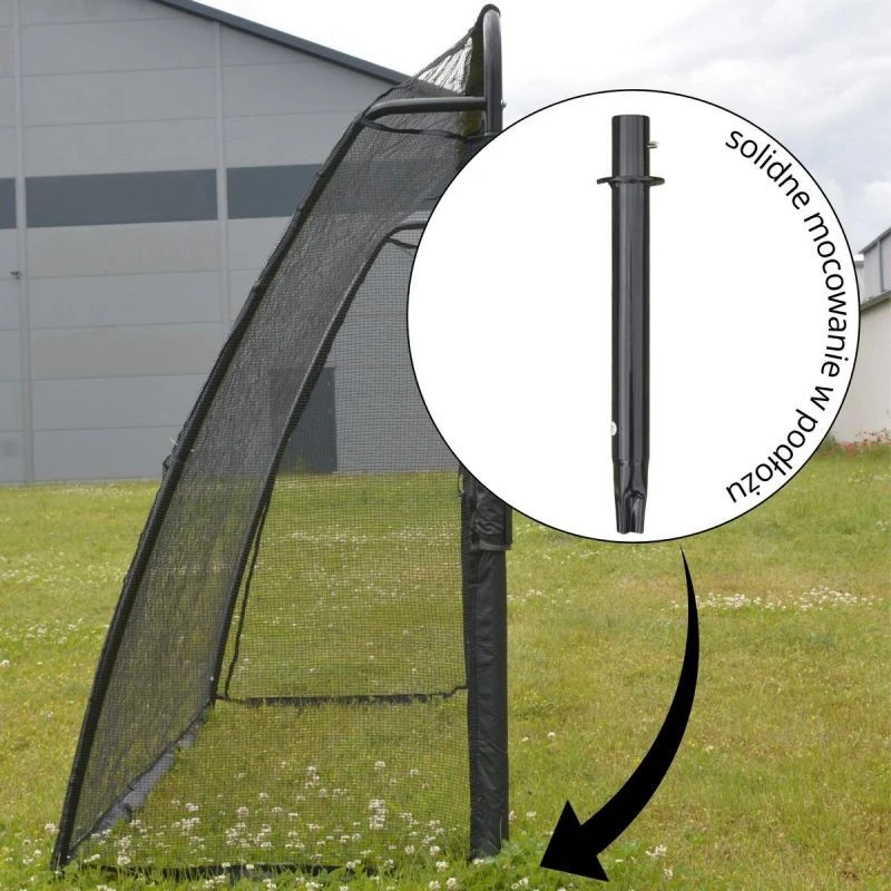 Branka je vybavena dvěma kovovými kotvami, které jsou zaraženy do země, aby stabilizovaly konstrukci a zabránily jejímu pohybu během intenzivní hry, takže můžete trénovat silné střely bez obav, že se branka převrhne nebo posune.