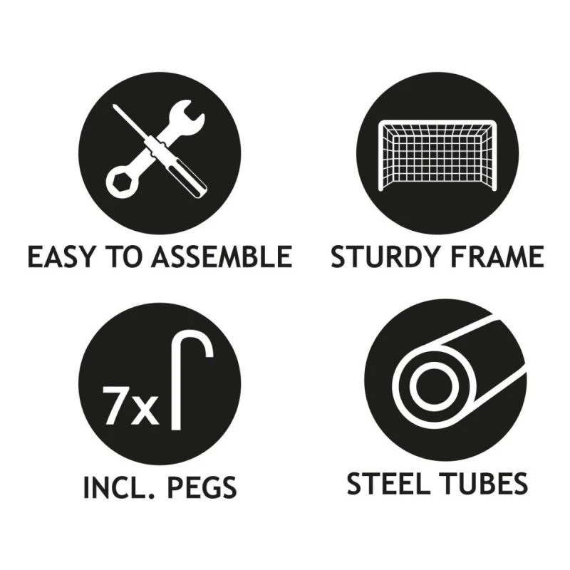 Branka je velmi stabilní, vyrobená z práškově lakovaných ocelových trubek (profilů) o průměru 32 mm. Zapomeňte na to, že se branka po každém úderu převrátí, upevňovací kolíky navíc branku zafixují k zemi.