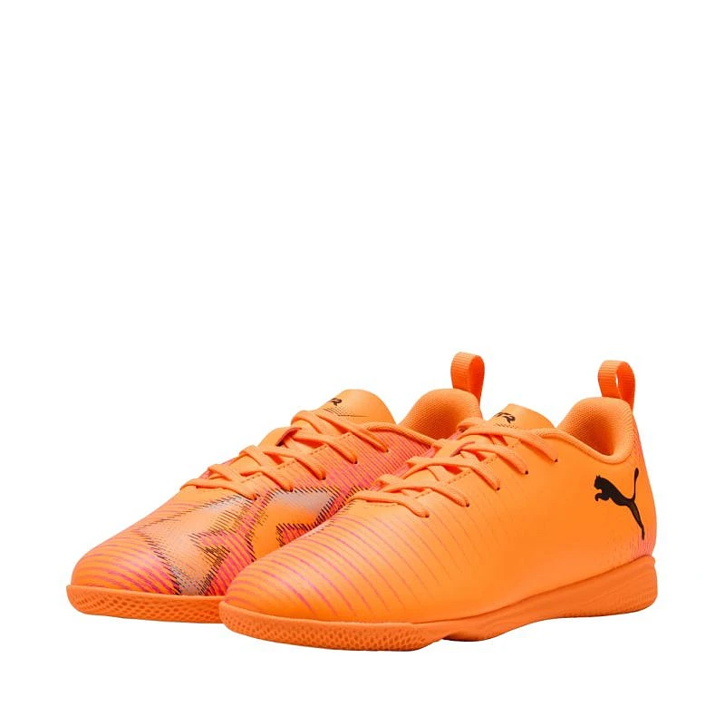 Buty piłkarskie dla chłopców Puma pochodzące z kolekcji The Hot Pursuit Pack przeznaczone są do gry na hali. Cholewka ze skóry syntetycznej. Dzianinowy język. Niski krój. Klasyczne sznurowanie. Niebrudząca, gumowa podeszwa zewnętrzna. Poziom: amatorski.