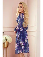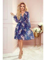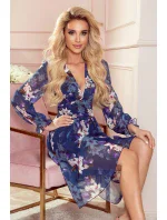 FRANCES - Tmavě modré květované dámské šifonové šaty s dekoltem 388-1