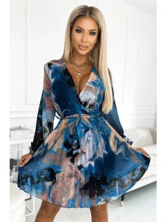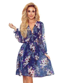 Přidání recenze k FRANCES - Tmavě modré květované dámské šifonové šaty s dekoltem 388-1