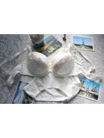 Krásná krajková podprsenka v krásné perleťové barvě. Je doplněna zlatým širším lemem, který důstojně doplňuje šálky. Složité výšivky elegantně přecházejí přes krajku a vytvářejí elektrizující celek pro smysly. Podprsenka má kostice a (vyjímatelné) push-up vycpávky - vložte je do podprsenky a vaše prsa se zvednou a podmanivě zvětší o celou velikost. Odnímatelné popruhy, velmi praktické. Vše jemné, ženské - pozvěte své smysly do země krásy!