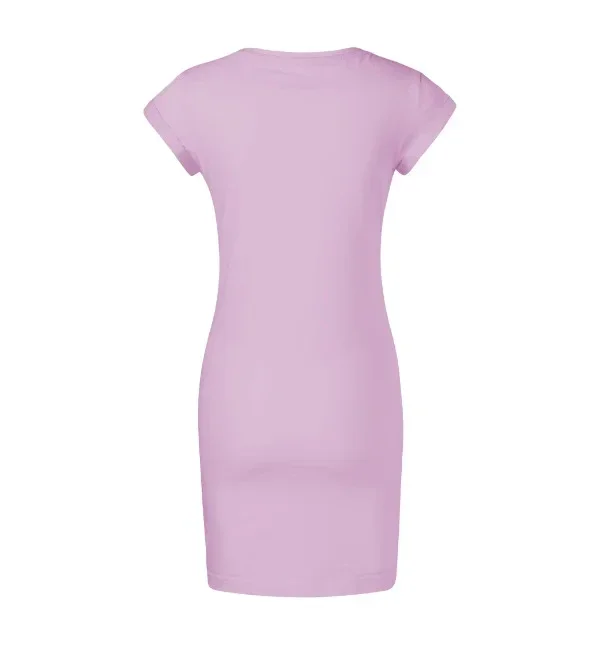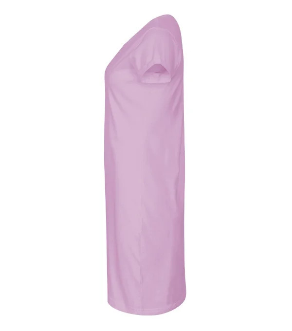 bez etikety - připraveno na rebranding volný, lehce tvarovaný střih s bočními švy délka nad kolena hlubší kulatý výstřih úzký lem průkrčníku z vrchového materiálu s 5 % elastanu neutrální velikostní štítek v boční části průkrčníku vnitřní část průkrčníku začištěna páskou v barvě 36 zpevňující páska od ramene k rameni ohrnuté rukávy zachycené ve 4 bodech šitím
