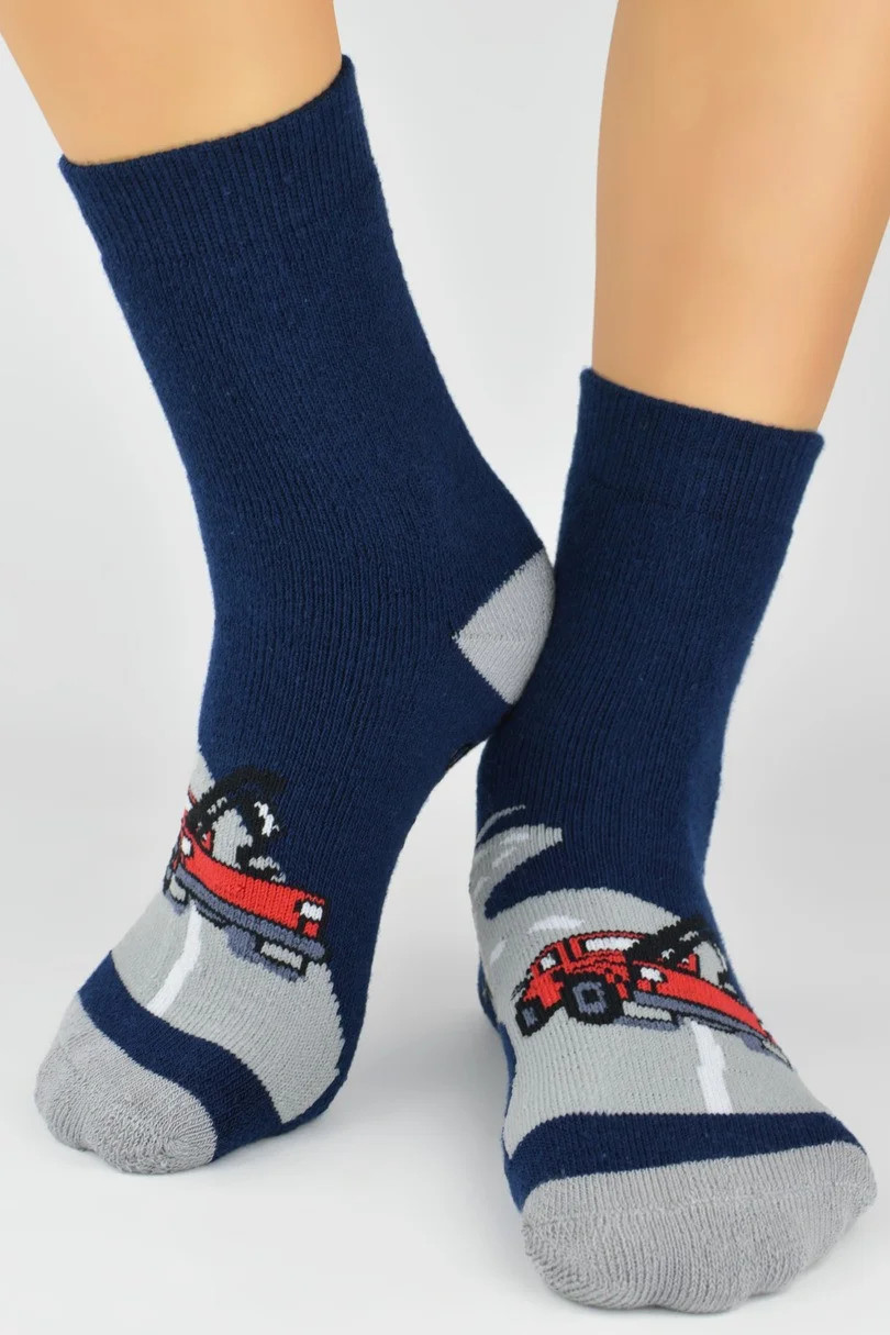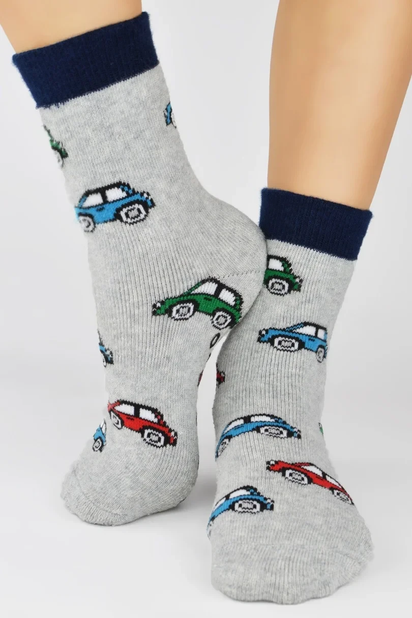 Skarpetki chłopięce frotte wzorzyste z antypoślizgową stopą z wysokiej jakości bawełny. Sprzedawane w miksach kolorystycznych.