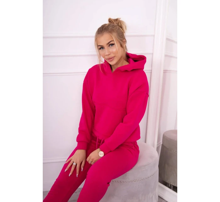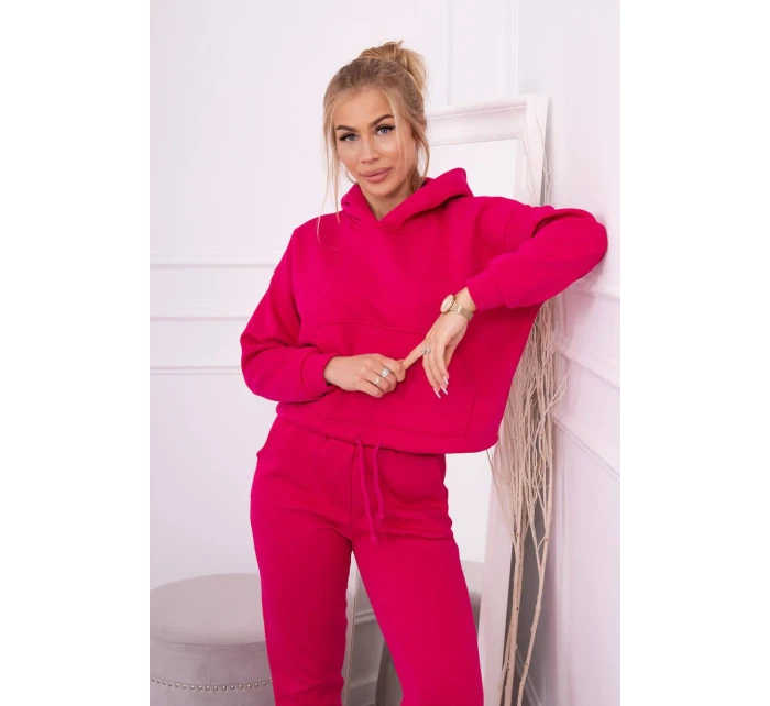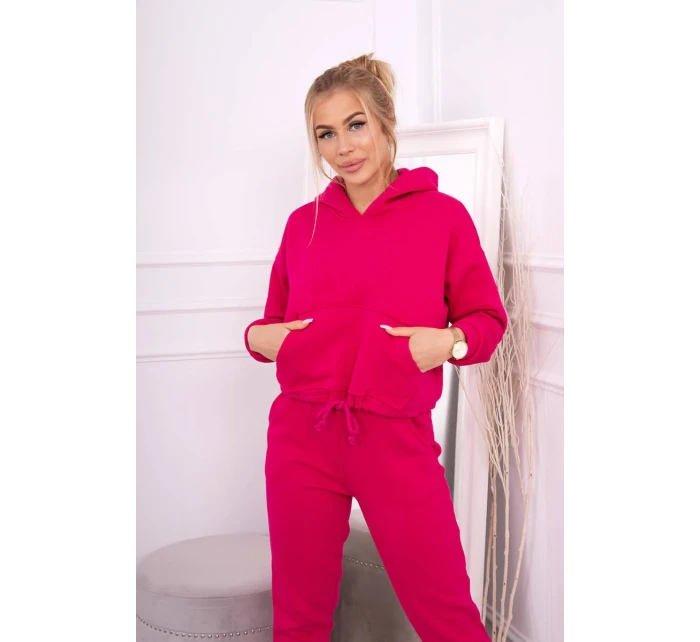 Fuchsiová oteplovací souprava s mikinou uvázanou dole