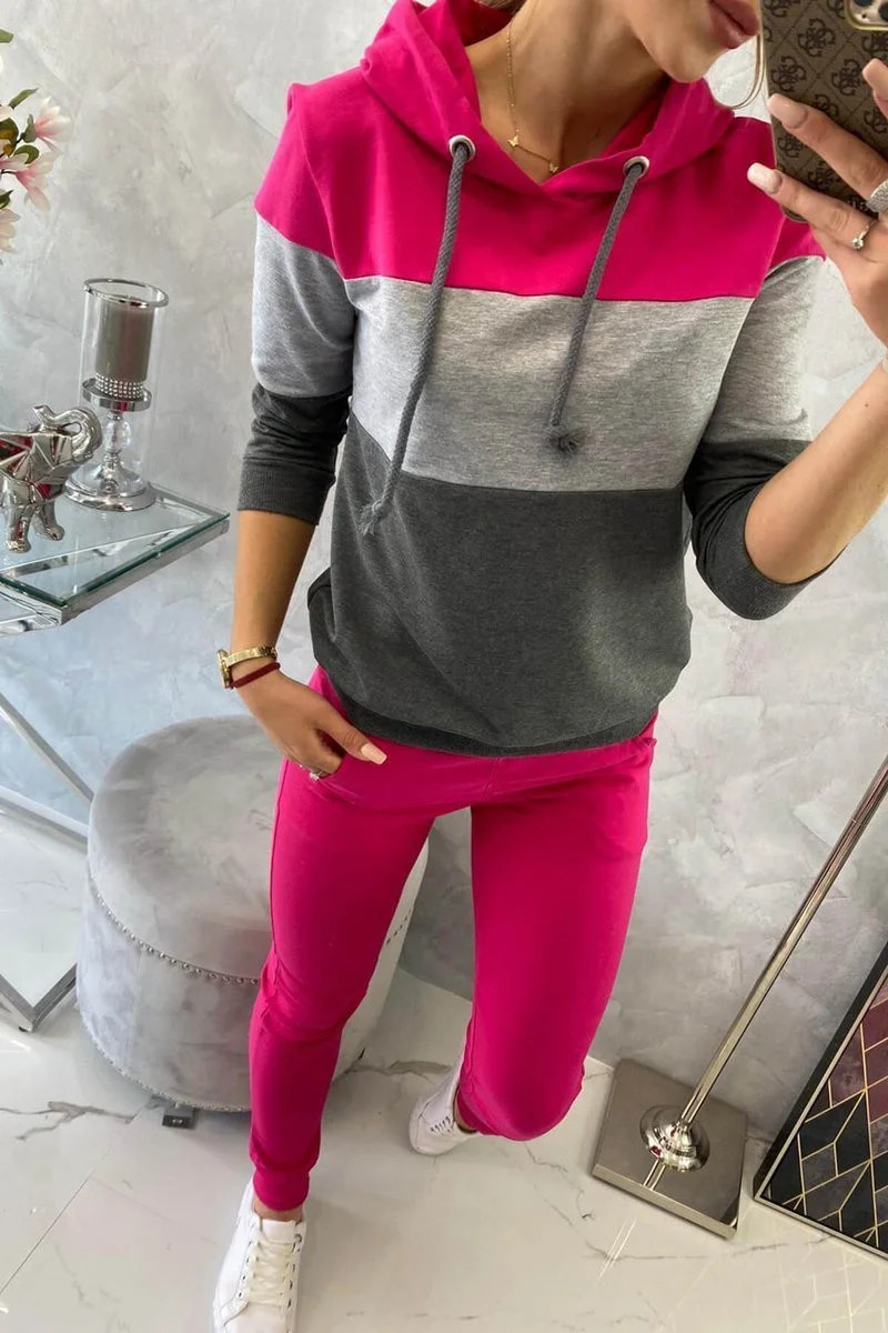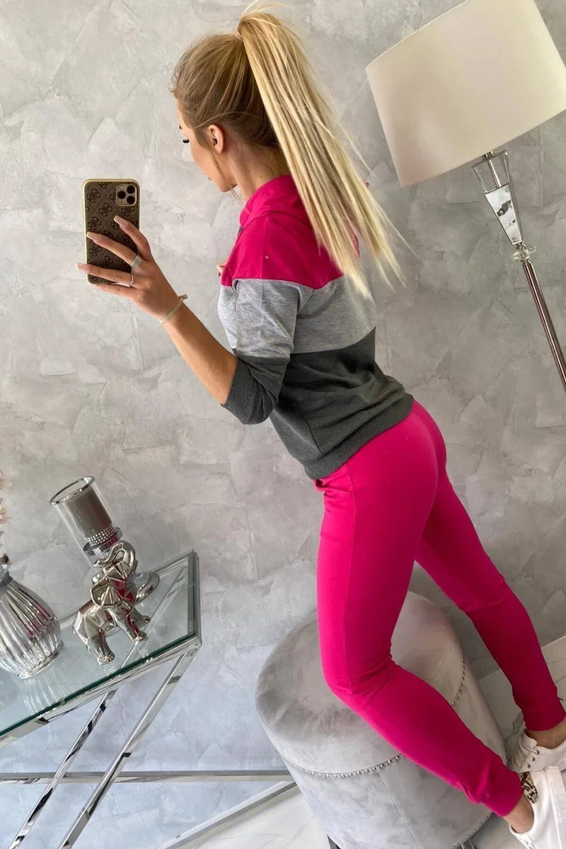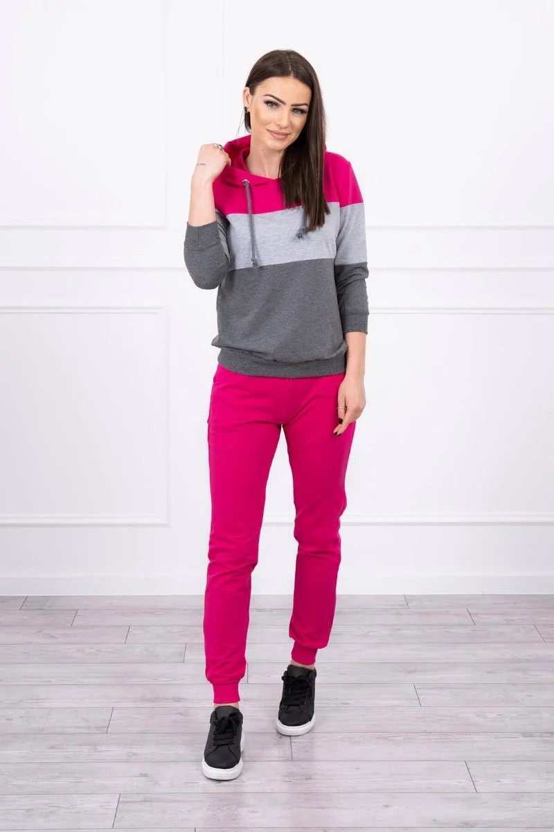 Fuchsiová+šedá barevná pruhovaná souprava