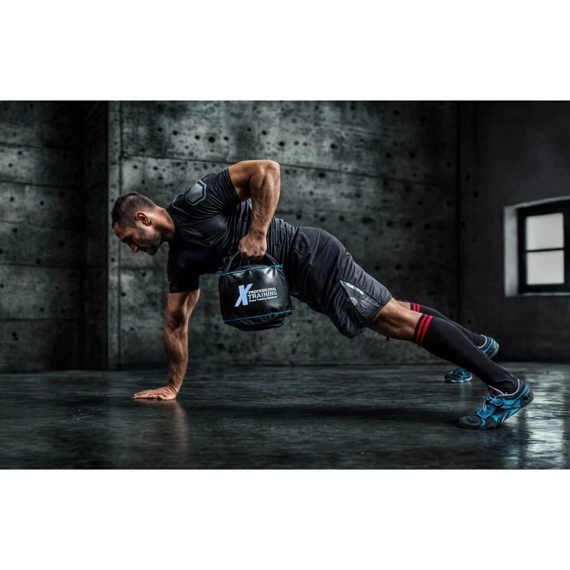 XBag to kompaktowy, regulowany worek treningowy (1–40 kg) do treningu funkcjonalnego – angażuje całe ciało, w tym mięśnie głębokie, bez potrzeby użycia kilku sprzętów