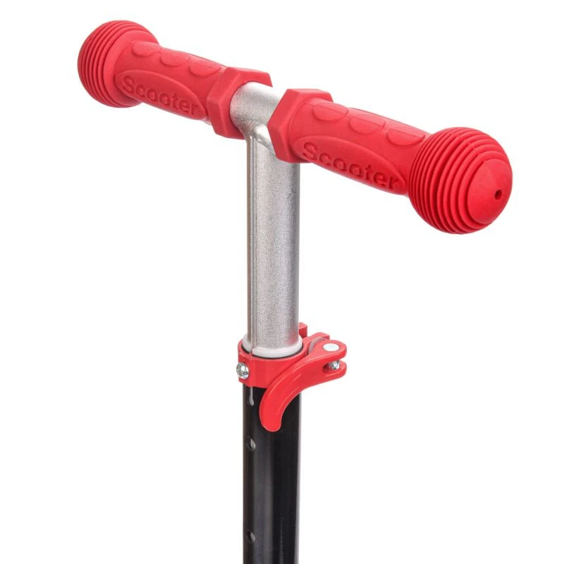 Kierownica typu T-bar z gumowymi uchwytami zapewnia kontrolę nad pojazdem i wygodny chwyt. Miękka powierzchnia rączek chroni przed odciskami i otarciami na dłoniach. Drążek kierownicy można wymontować w prosty sposób przy pomocy jednego przycisku, sprawiając, że hulajnoga jest kompaktowa i łatwa w transporcie. Jej wysokość można regulować na 4 wysokościach w zakresie: 60/65/70/75cm, pozwalając na łatwe dopasowanie hulajnogi do wzrostu dziecka.