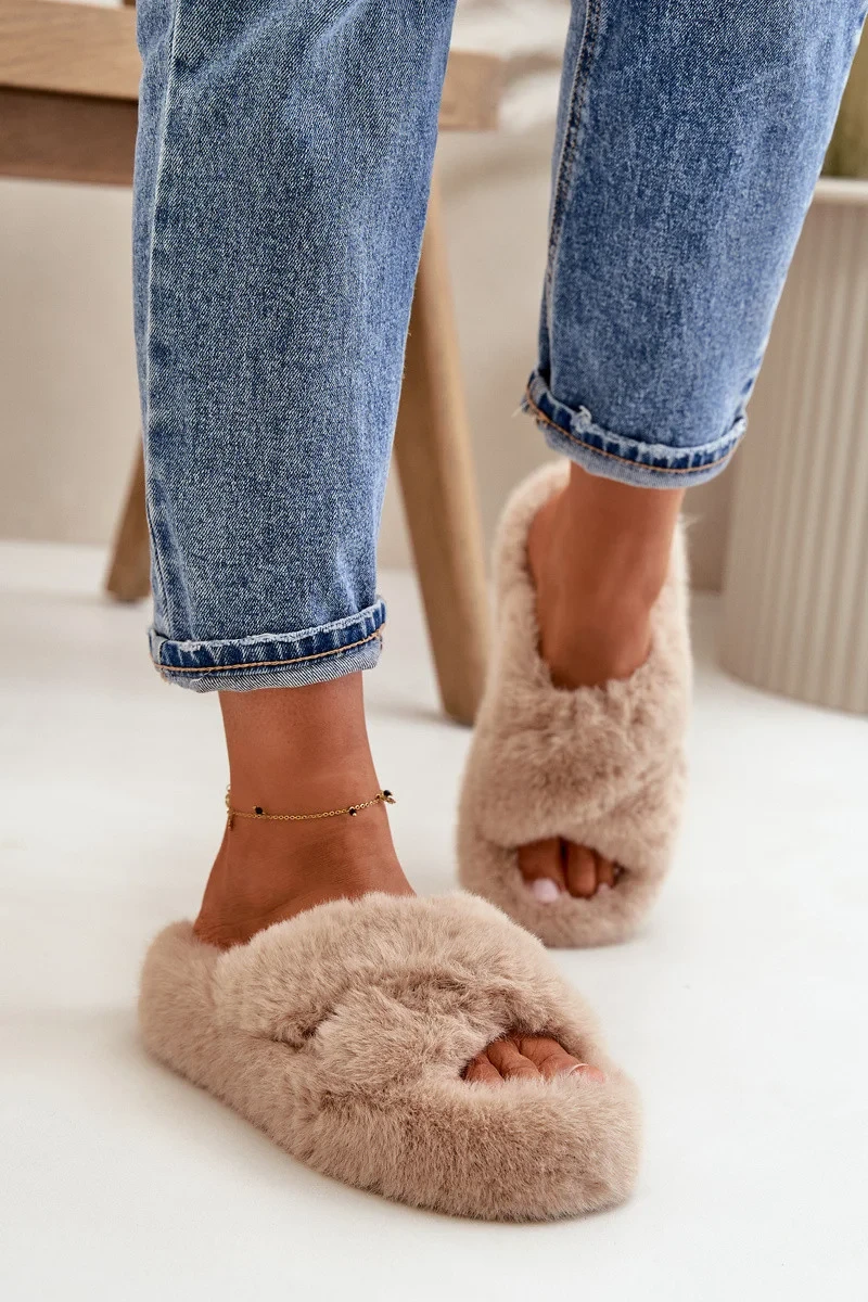 Přidání recenze k Futrzane Dámské Pantofle Na Silné Podešvi Béžové Lavitera