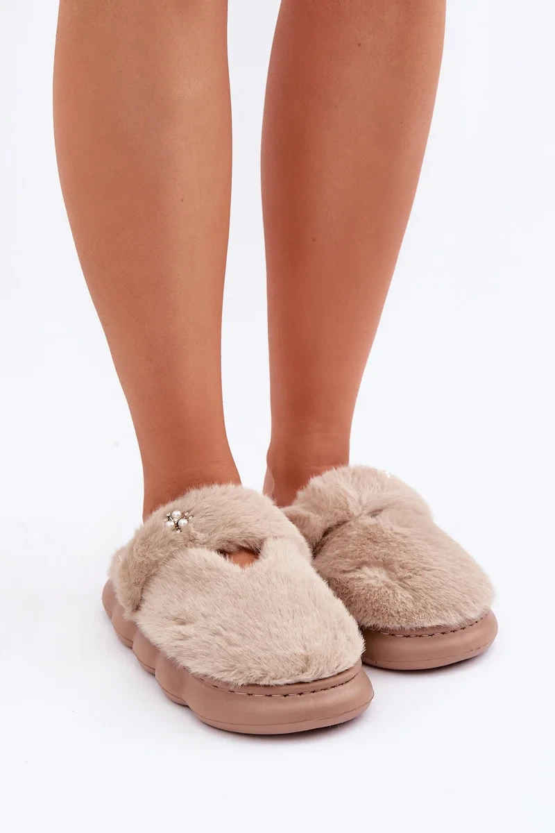 Přidání recenze k Futrzane Pantofle S Malou Broží Tmavě Béžové Primaria
