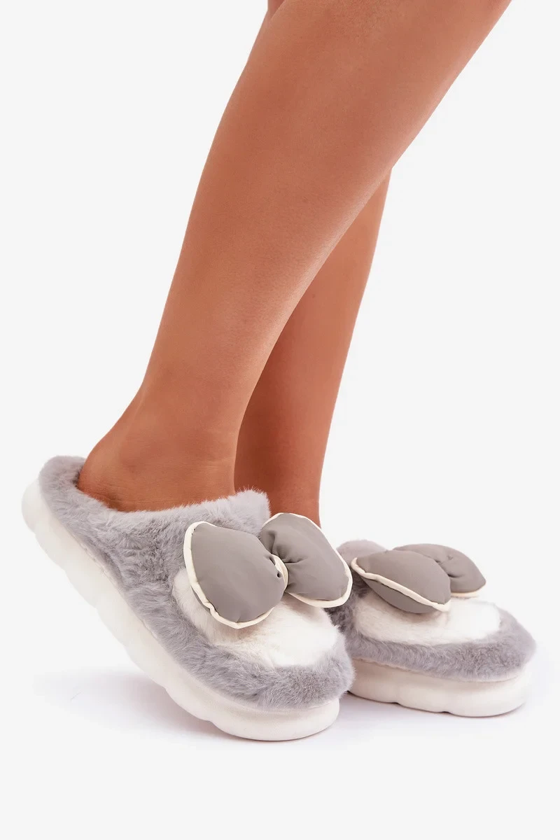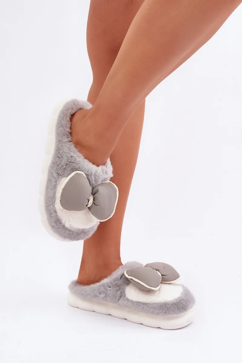 Futrzane Pantofle S Mašlí Šedé Grilis