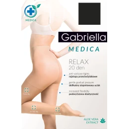 Wyrób pończoszniczy marki Gabriella. Model Medica Relax 20 DEN Code 110. Produkt został wykonany z 85% poliamid, 15% elastan. Odzież korygująca. Grubość: 20 DEN. Produkt damski.