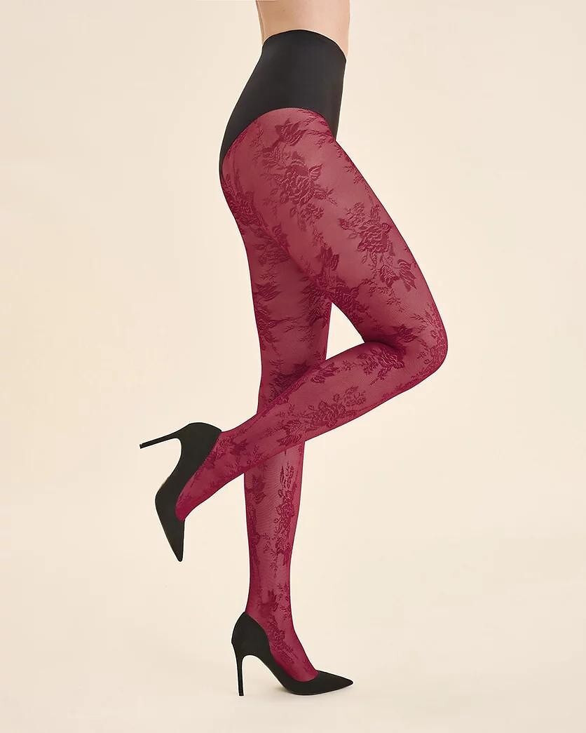 Dámské punčocháče s květinovým vzorem inspirovaným krajkou