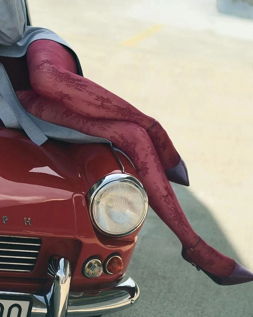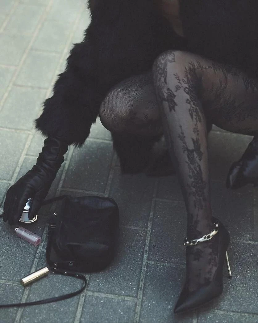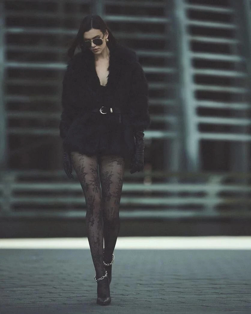 Dámské punčocháče s květinovým vzorem inspirovaným krajkou