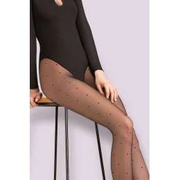 Punčochové zboží značky Gabriella, model Puntina Code 471, vyrobeno z 85% polyamidu, 15% elastanu. Vlastnosti výrobku: efektní tečky, bez vyznačených špiček, tloušťka 20 DEN, dámský výrobek, bez vyznačených nohaviček.