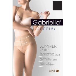 Punčochové zboží značky Gabriella. zeštíhlující prádlo 17 DEN kód modelu 716. Výrobek je vyroben z 85 % polyamidu, 15 % elastanu. vlastnosti výrobku: korigující tvar bříška. bez vyznačených špiček. modelující oblečení. zeštíhlující prádlo. tloušťka: 17 DEN. dámský výrobek. vyznačené kalhotky.