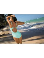 Pozoruhodný je střih - italský elastický úplet s vhodným prošitím zakrývá drobné nedokonalosti siluety a atraktivně ji prezentuje. Horní díl s tvarovanými, vyztuženými košíčky. Pozvedá prsa a žensky je zvýrazňuje. Ve velikostech S, M, L jsou navíc součástí balení push-up vycpávky, které opticky zvětší vaše poprsí. Zapínání na přezku na zadní straně. Plavky odhalují záda (látka tvoří tvar písmene "U", který krásně zakrývá hýždě). Nastavitelné řemínky posázené zirkony se elegantně lesknou v záři slunečních paprsků. Skutečný luxus, který stojí za to si dopřát...