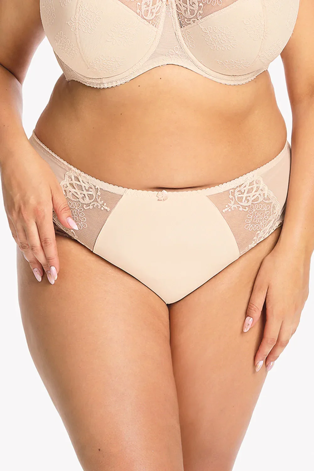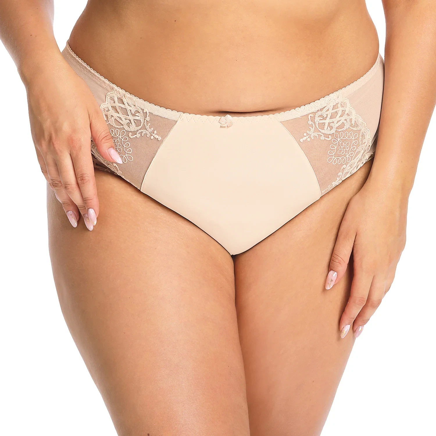 Kalhotky Gaia, model 1107M Elena Maxi. Výrobek je vyroben z 60% polyamidu, 15% polyesteru, 15% elastanu, 10% bavlny. Dámské kalhotky s vysokým sedem.