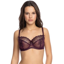 Podprsenka Gaia. Model 1143 Hestia. Má dráty, které prsa vhodně tvarují. Svislé velrybí kosti zasazené po stranách. Výrobek má nastavitelné popruhy bez možnosti odepnutí. Kovové háčky na popruh. Podprsenka se zapínáním na háčky a oči. Upevňovací bod: vzadu. Výrobek je vyroben ze 60 % z polyesteru, 32 % z polyamidu a 8 % z elastanu. Výrobek pro ženy.