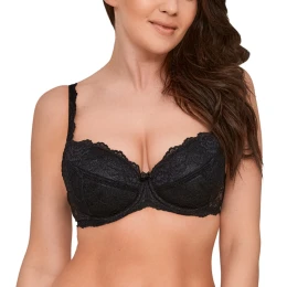 Biustonosz marki Gaia. Model 1161 Kasjana. Posiada druty, które podpierają piersi odpowiednio je kształtując. Produkt posiada regulowane ramiączka bez możliwości ich odpięcia. Haczyki do ramiączek metalowe. Biustonosz zapinany na haftki. Miejsce zapięcia: tył. Produkt został wykonany z 65% poliamid, 30% bawełna, 5% elastan. Produkt posiada kieszonki na wkładki. Produkt damski.