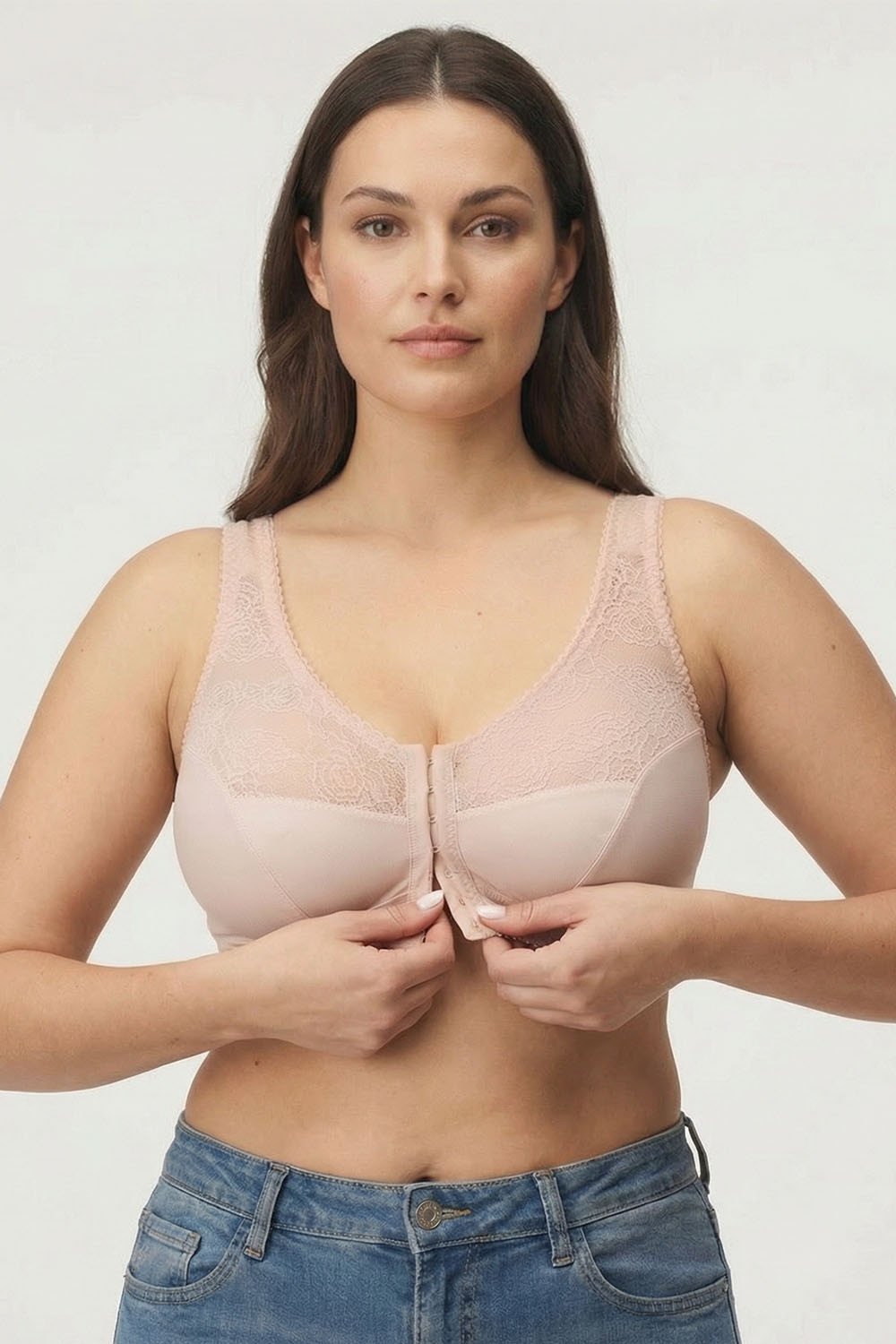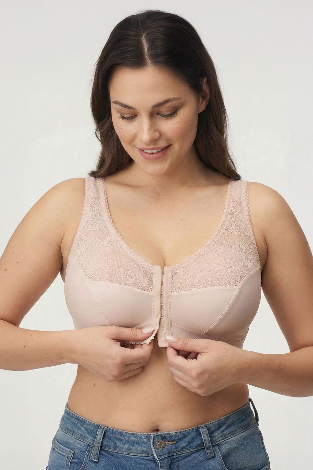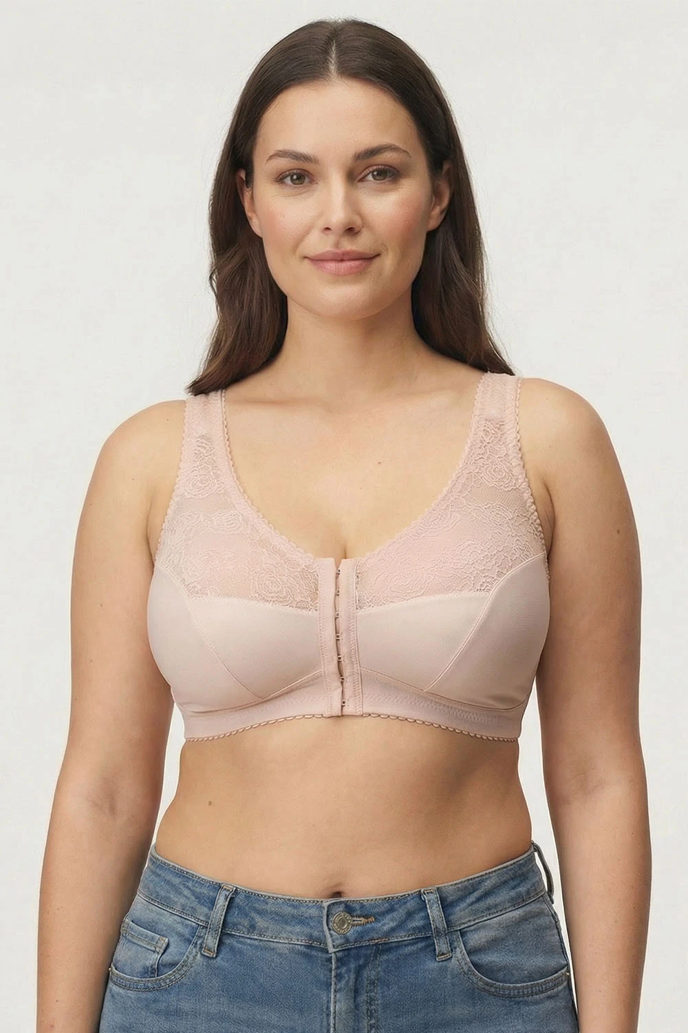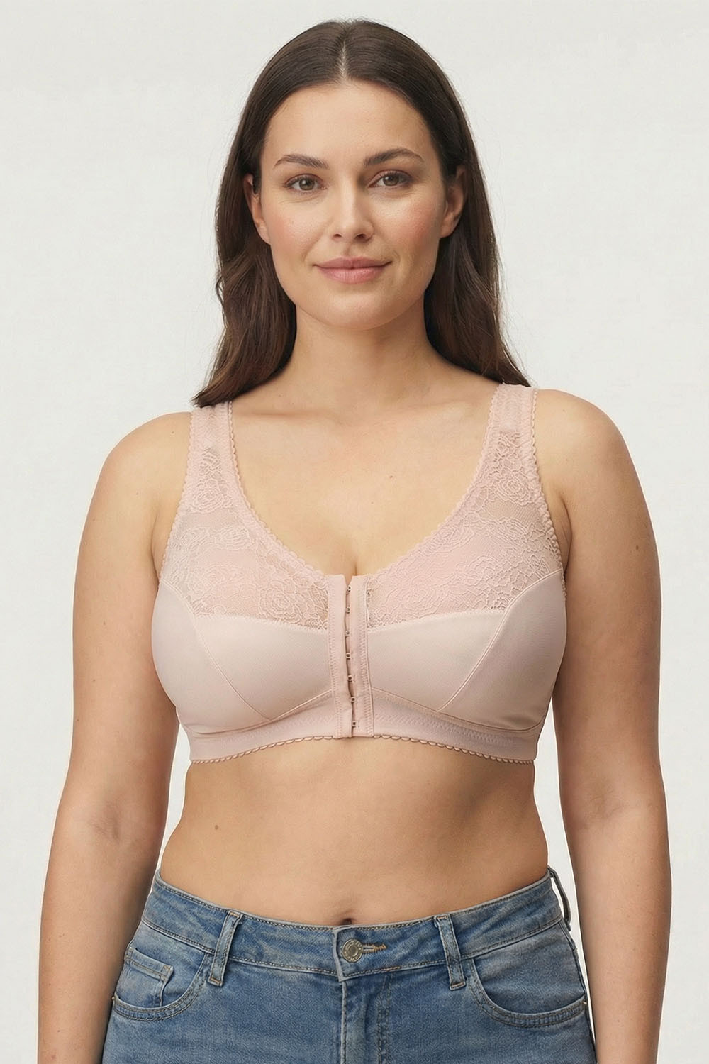 Podprsenka Gaia. Model 1163 Rachela. Výrobek má nastavitelné popruhy bez možnosti odepnutí. Kovové háčky na popruh. Podprsenka se zapínáním na háčky a oči. Zapínání: vpředu. Výrobek je vyroben z 85 % z polyamidu a 15 % z elastanu. Výrobek pro ženy.