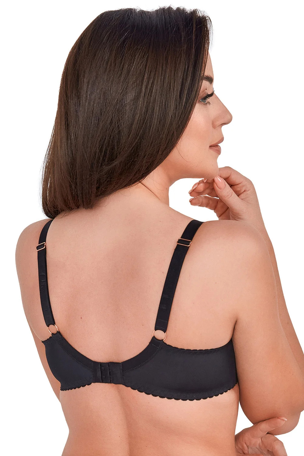 Podprsenka Gaia. Model 1221 Kira. Má dráty, které prsa vhodně tvarují. Svislé velrybí kosti zasazené po stranách. Výrobek má nastavitelné popruhy bez možnosti odepnutí. Kovové háčky na popruh. Podprsenka se zapínáním na háčky a oči. Upevňovací bod: vzadu. Výrobek je vyroben z 80 % z polyesteru, 16 % z polyamidu a 4 % z elastanu. Výrobek pro ženy.