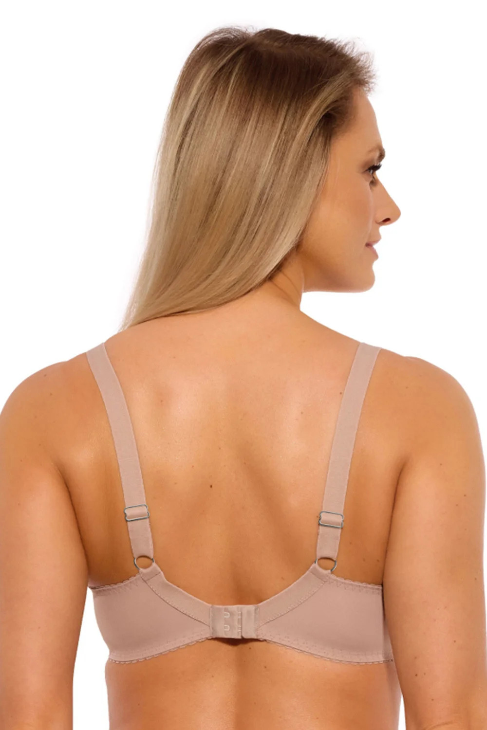 Podprsenka Gaia, model 1262 Camilla, s drátky, které podporují a tvarují prsa. svislé kostice na bocích. nastavitelná ramínka, kovové háčky na ramínka, zapínání na háčky, zadní díl, vyrobeno z 61 % polyamidu, 14 % bavlny, 12 % elastanu, 10 % polyesteru, 3 % polyuretanu. dámské oblečení.