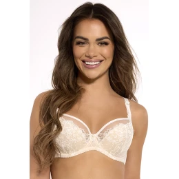Podprsenka Gaia, model 1282 Nellie, s drátky, které podpírají a tvarují prsa, svislé velrybí kostice na bocích, nastavitelná ramínka, kovové háčky, zapínání na háčky a oka, zadní díl, vyrobeno z 60% polyesteru, 21% polyamidu, 14% bavlny, 3% polyuretanu, 2% elastanu, ženská barva.
