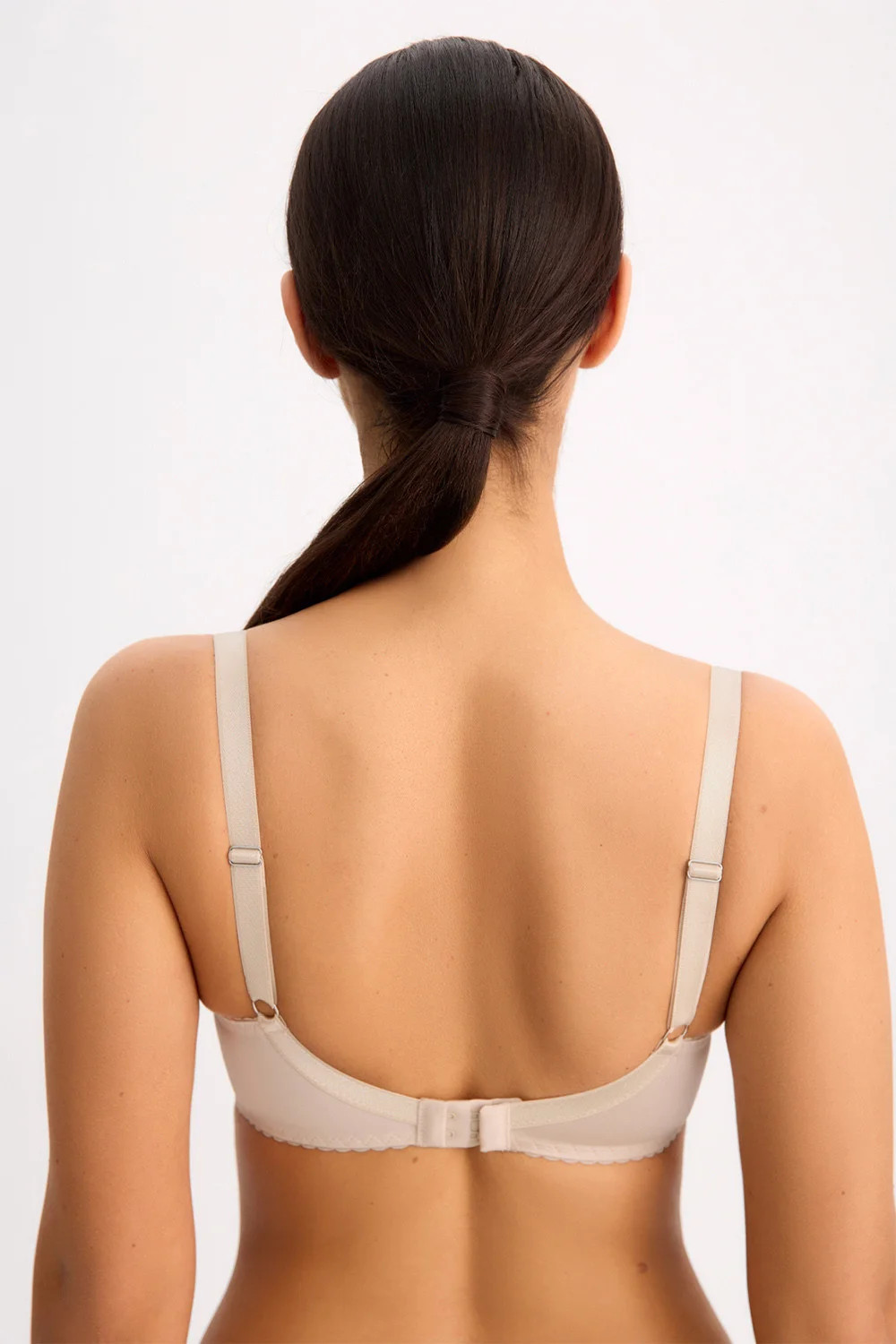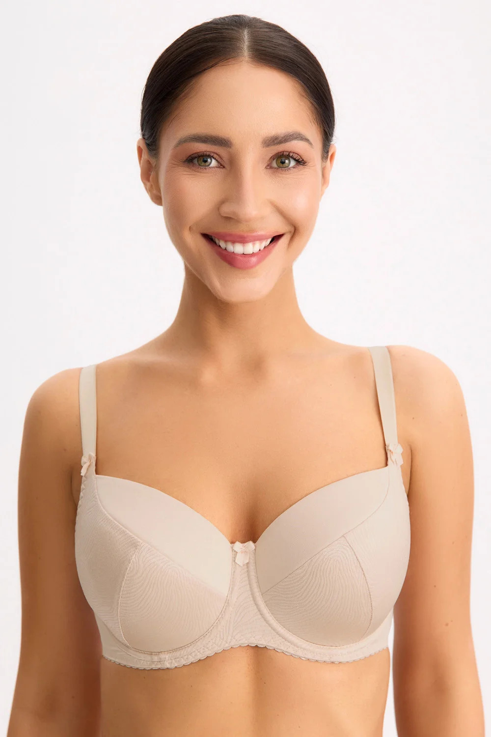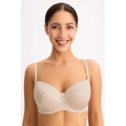 Podprsenka značky Gaia, model 281 Kate, s drátky, které podporují a tvarují prsa. Výrobek má nastavitelná ramínka bez možnosti odepnutí. Zapínání na háčky. Místo zapínání: na zádech. 2 řady svislých háčků. 3 úrovně vodorovných háčků. Výrobek je vyroben z 69 % polyamidu, 18 % bavlny, 8 % ostatních materiálů, 5 % elastanu. Dámský výrobek.