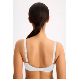 Biustonosz marki Gaia. Model 281 Kate. Posiada druty, które podpierają piersi odpowiednio je kształtując. Produkt posiada regulowane ramiączka bez możliwości ich odpięcia. Haczyki do ramiączek metalowe. Biustonosz zapinany na haftki. Miejsce zapięcia: tył. Dwa rzędy haftek pionowych. Trzy stopnie haftek poziomych. Produkt został wykonany z 69% poliamid, 18% bawełna, 8% inne, 5% elastan. Produkt damski.