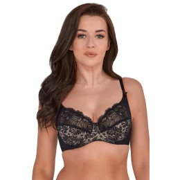 Podprsenka Gaia, model 534 Chantal, s kosticemi pro podporu a tvarování prsou, svislé kostice na bocích, nastavitelná ramínka, kovové háčky na ramínkách, zapínání na háčky a oka, zadní díl, vyrobeno z 48 % polyamidu, 40 % polyesteru a 12 % elastanu, ženská, sexy krajka, sexy krajka.
