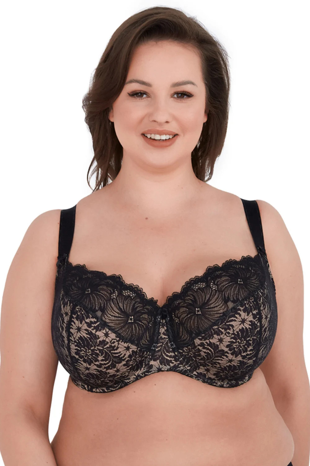 Podprsenka Gaia, model 534M Chantal, s drátky, které podporují a tvarují prsa. svislé kostice na bocích. nastavitelná ramínka, neodnímatelná. zapínání na háčky. tři řady svislých háčků. tři úrovně vodorovných háčků. výrobek je vyroben z 48 % polyamidu, 40 % polyesteru, 12 % elastanu. dámský výrobek. vlastnosti výrobku: sexy krajkové maxi.