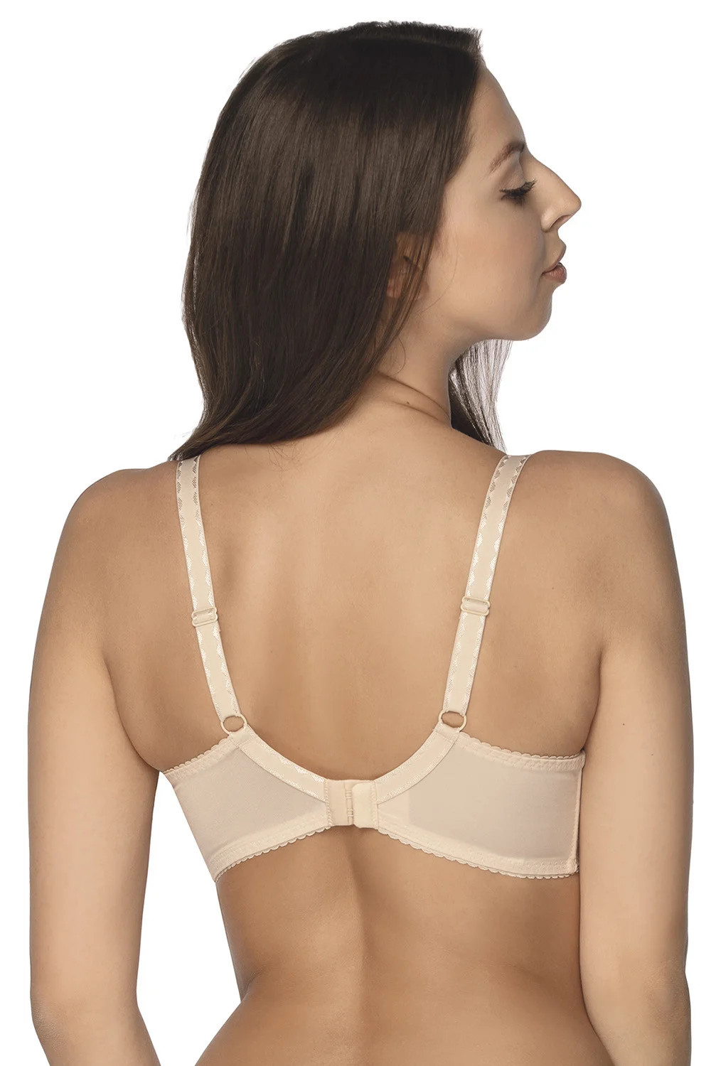 Podprsenka Gaia. Model 594 Sandy. Má dráty, které prsa vhodně tvarují. Svislé velrybí kosti zasazené po stranách. Výrobek má nastavitelné popruhy bez možnosti odepnutí. Kovové háčky na popruh. Podprsenka se zapínáním na háčky a oči. Upevňovací bod: vzadu. Dvě řady svislých háčků. Tři stupně horizontálních háčků. Výrobek je vyroben z 51 % z polyamidu, 25 % z polyesteru, 12 % z bavlny, 10 % z elastanu a 2 % z polyuretanu. Výrobek pro ženy. Výhody produktu: ženská krajka poloměkká.