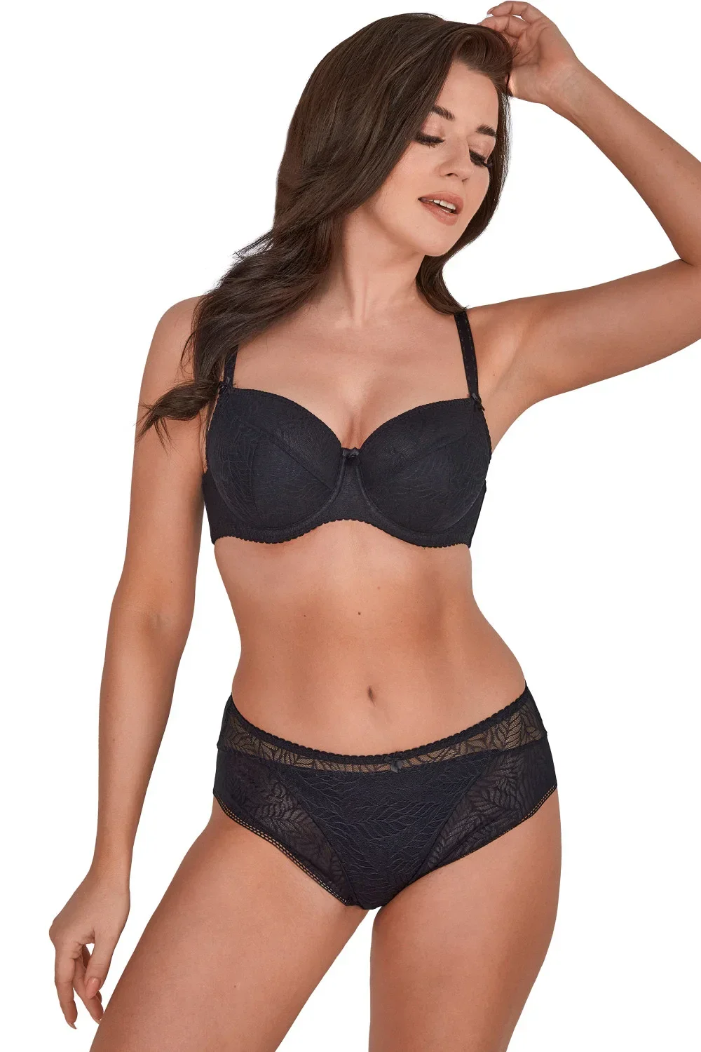 Podprsenka Gaia. Model 594 Sandy. Má dráty, které prsa vhodně tvarují. Svislé velrybí kosti zasazené po stranách. Výrobek má nastavitelné popruhy bez možnosti odepnutí. Kovové háčky na popruh. Podprsenka se zapínáním na háčky a oči. Upevňovací bod: vzadu. Dvě řady svislých háčků. Tři stupně horizontálních háčků. Výrobek je vyroben z 51 % z polyamidu, 25 % z polyesteru, 12 % z bavlny, 10 % z elastanu a 2 % z polyuretanu. Výrobek pro ženy. Výhody produktu: ženská krajka poloměkká.