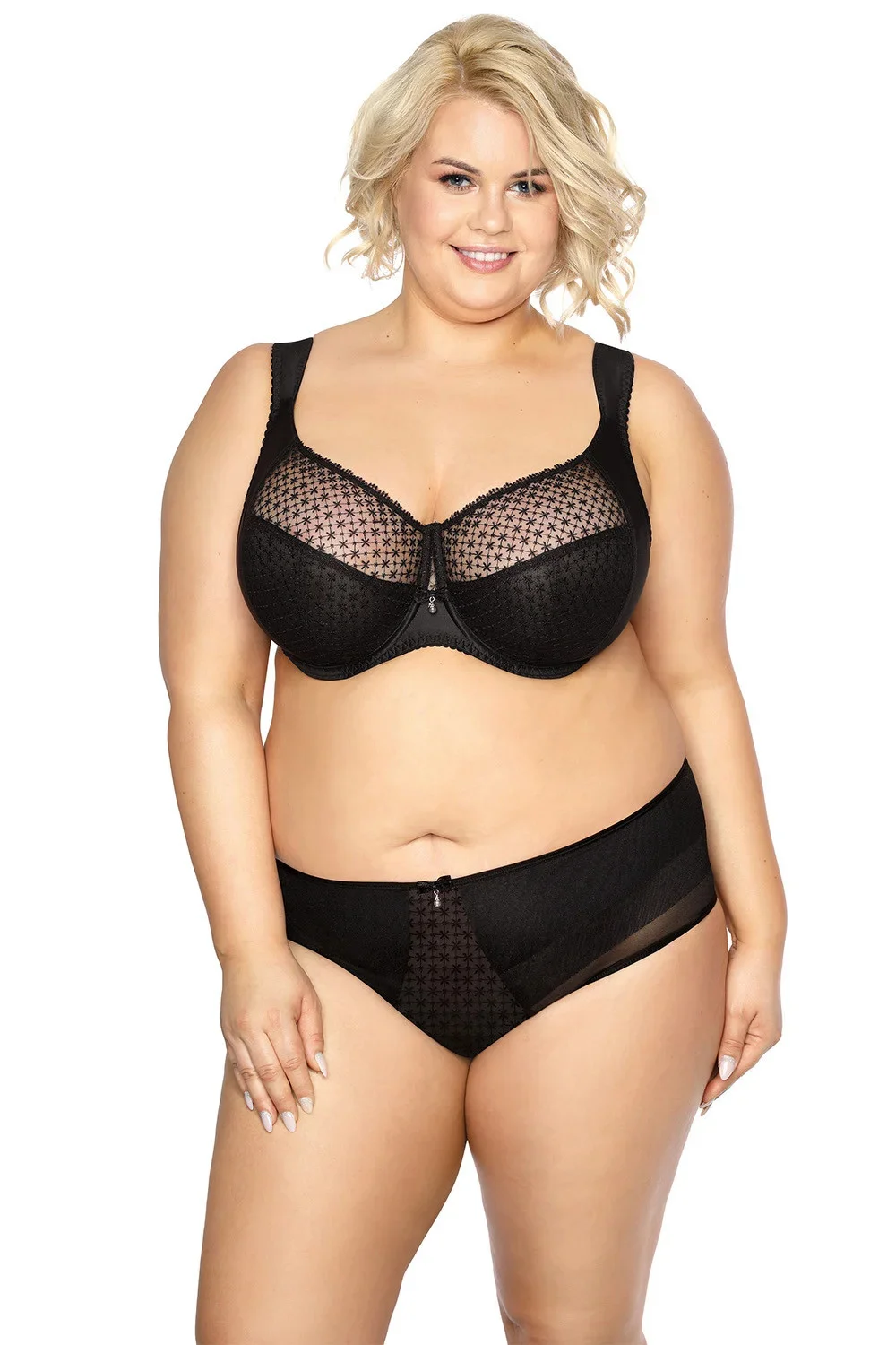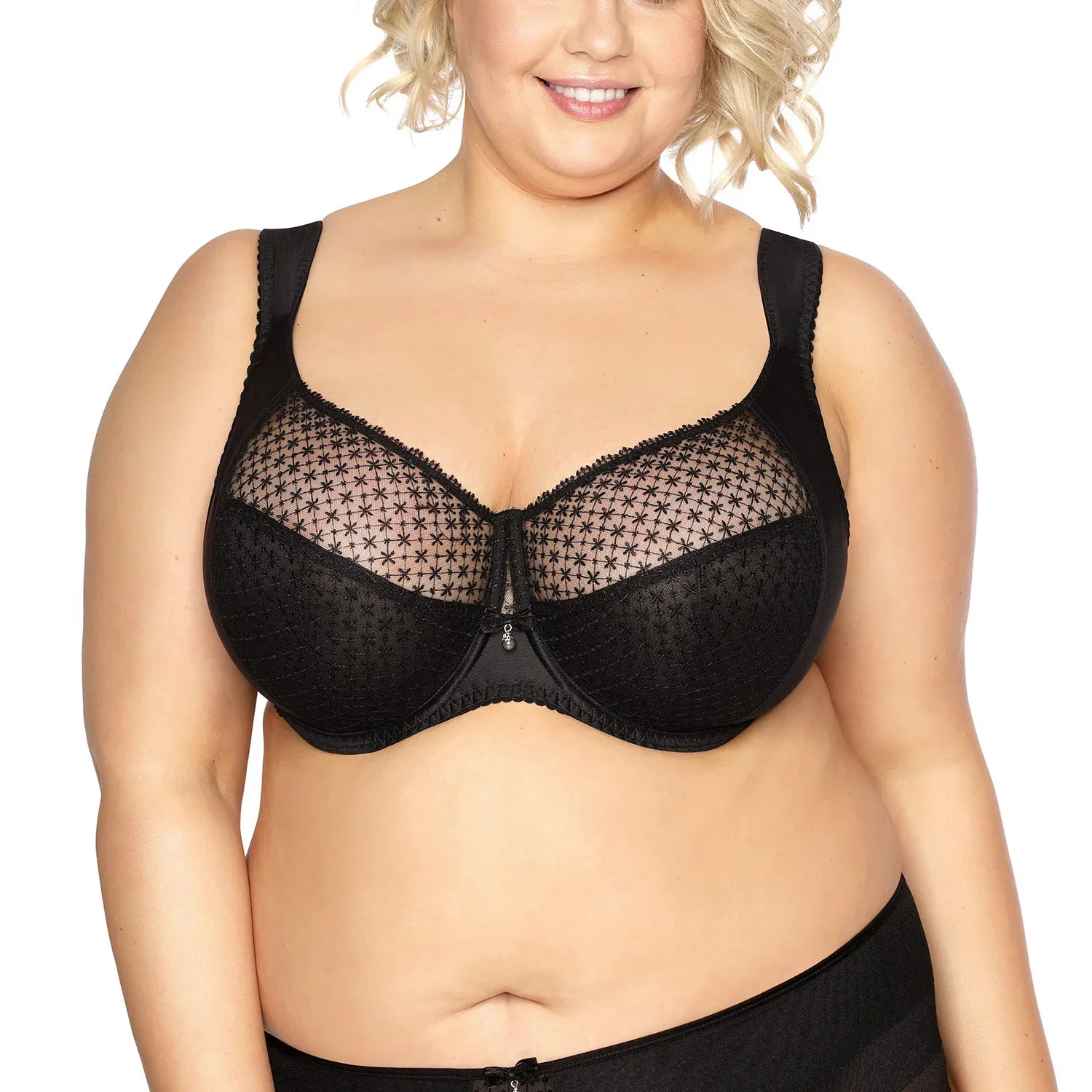 Podprsenka Gaia. Model 874M Samira Maxi. Má dráty, které prsa vhodně tvarují. Svislé velrybí kosti zasazené po stranách. Výrobek má nastavitelné popruhy bez možnosti odepnutí. Podprsenka se zapínáním na háčky a oči. Upevňovací bod: vzadu. Tři řady svislých háčků. Tři stupně horizontálních háčků. Výrobek je vyroben z 91 % z polyamidu a 9 % z elastanu. Výrobek pro ženy. Výhody produktu: klasika pro větší prsa.